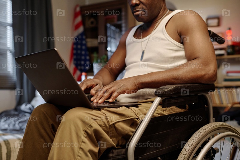 Американский мужчина в инвалидном кресле, работающий фрилансером из дома
