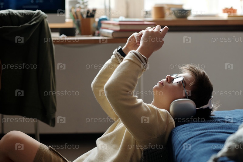 Мальчик играет в видеоигру против кровати