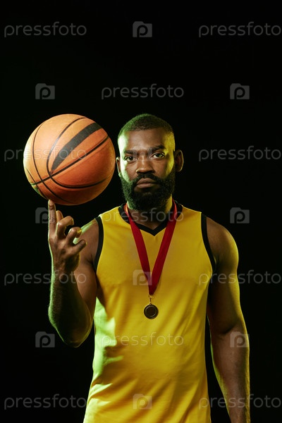 Черный баскетбольный игрок, носящий золотую медаль