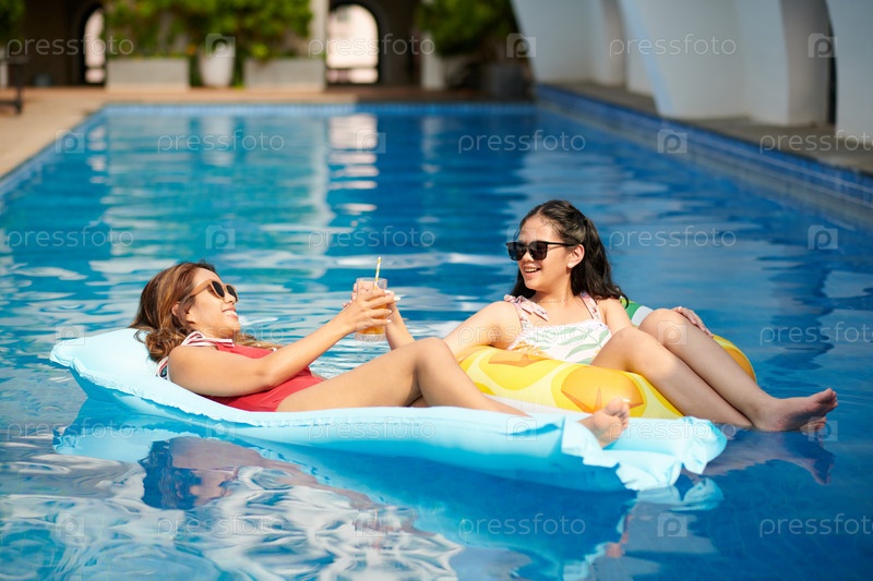 Мать и дочь проводят время в бассейне