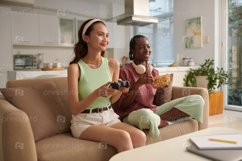 Веселые друзья играют в видеоигры