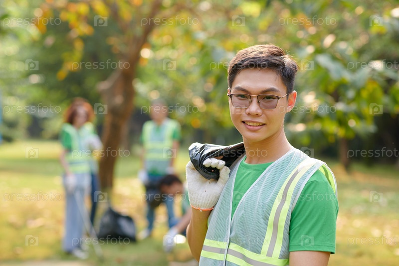 Улыбающийся вьетнамский эко-доброволец