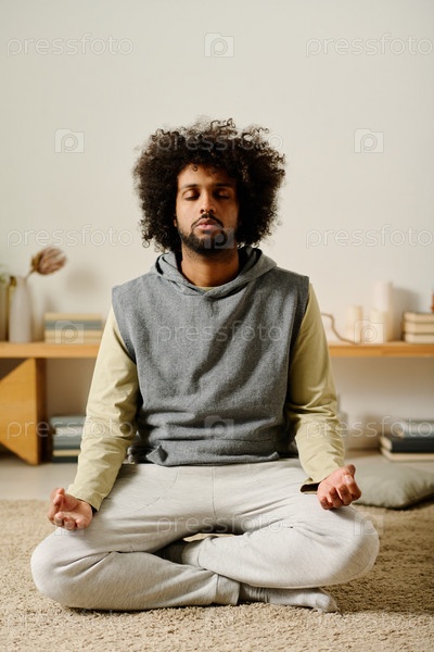 Молодой спокойный мужчина практикует йогу