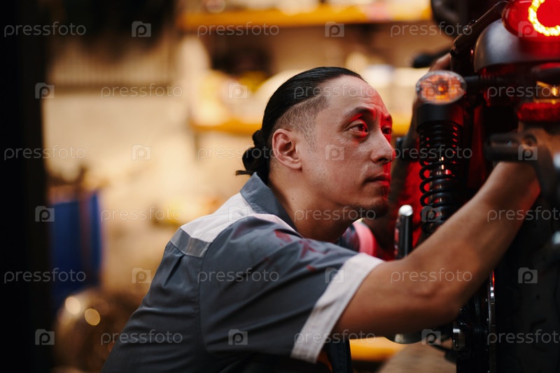 Исследование мотоцикла в мастерской