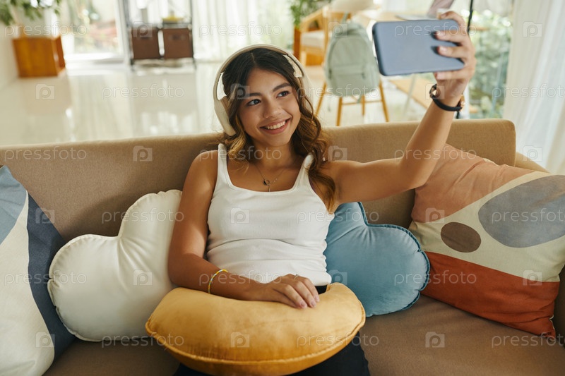 Подростковая девушка делает селфи