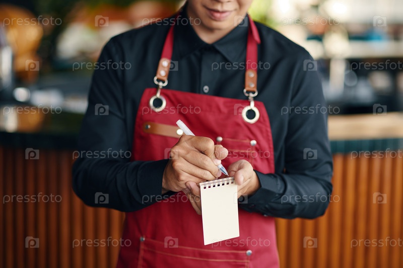 Официант записывает заказ гостя