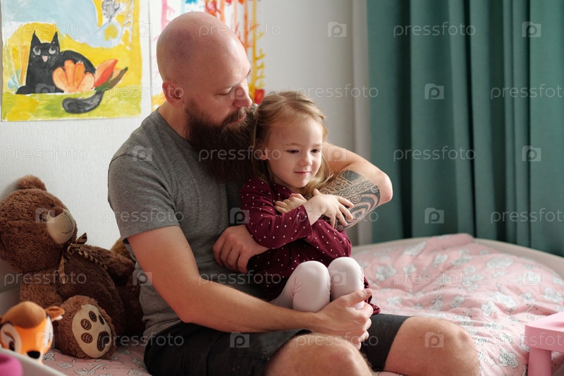 Отец обнимает свою милую дочь