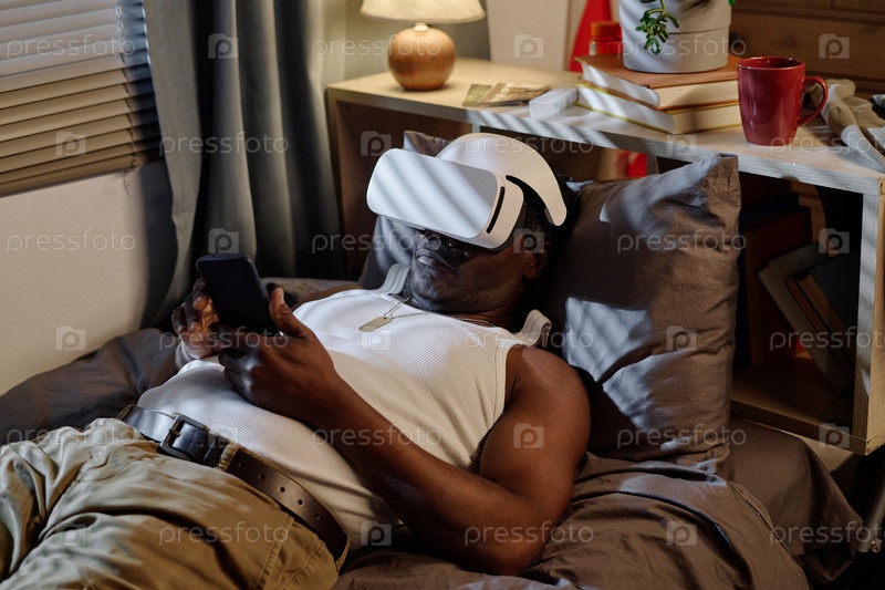 Пожилой афроамериканец проводит вечер, пробуя современные гаджеты