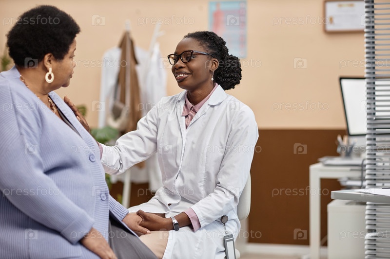 Улыбающийся врач поддерживает зрелого пациента в клинике