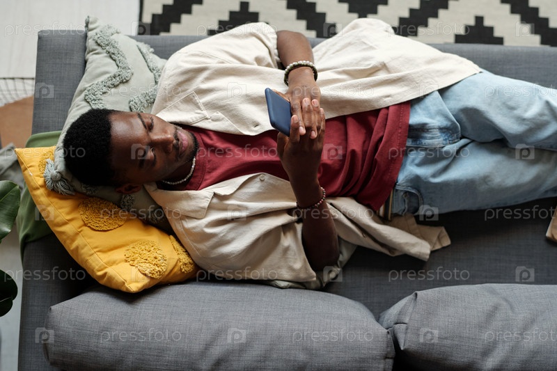 Молодой человек отправляет сообщения, отдыхая