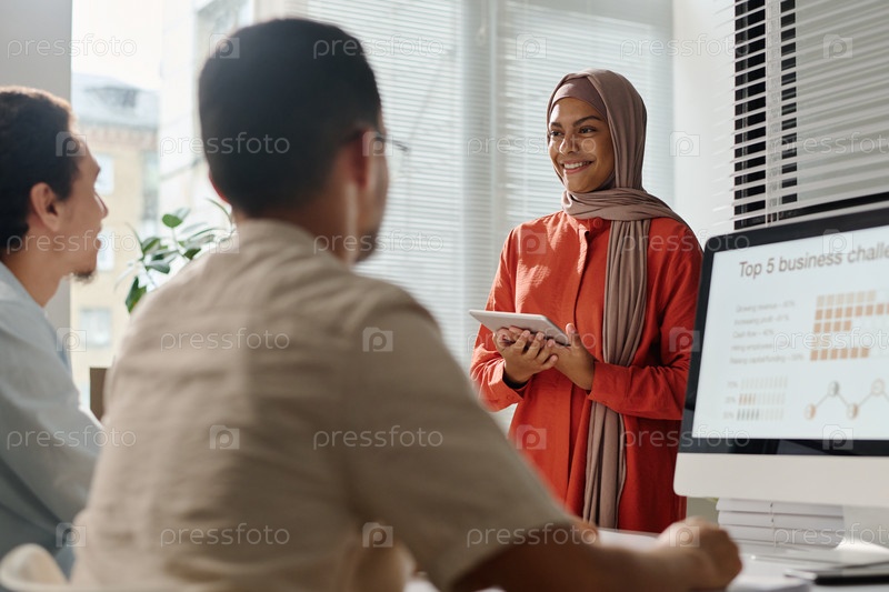 Счастливая молодая мусульманка-экономист
