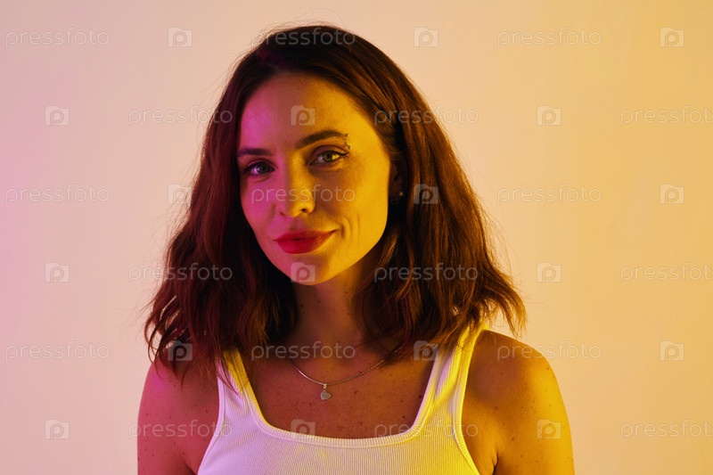 Улыбающаяся брюнетка с густыми волосами