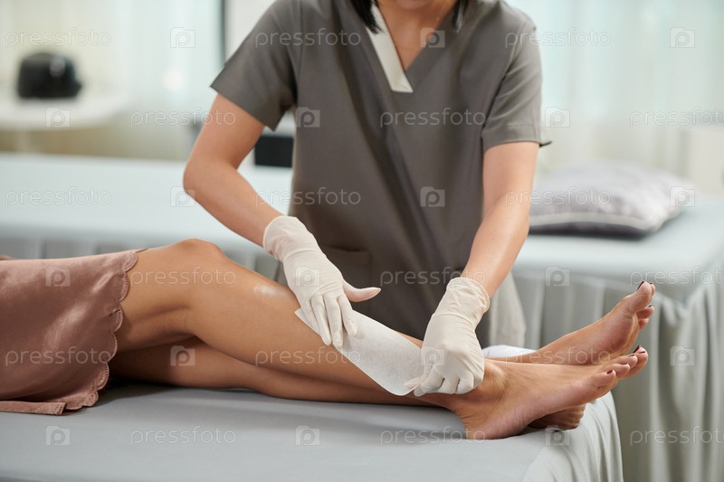 Косметолог удаляет волосы на ногах
