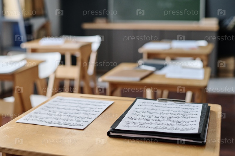 Лист музыки на столе в классе
