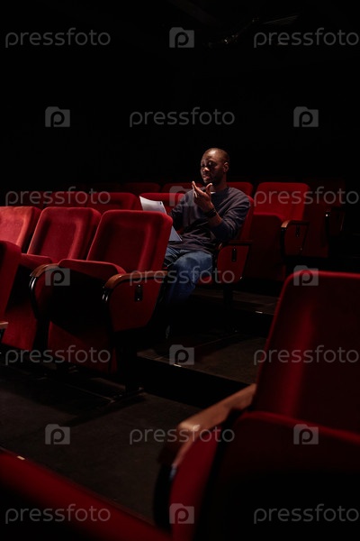 Черный мужчина сидит в аудитории и читает