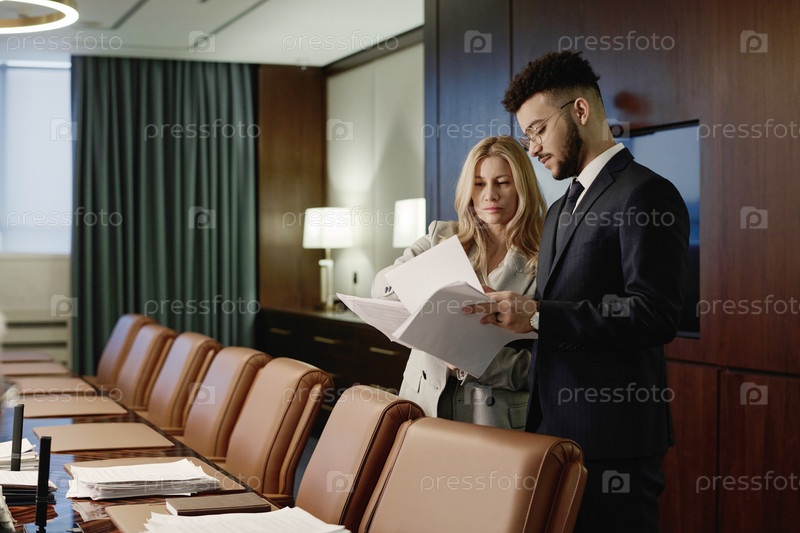 Официальные юристы изучают документы в офисной конференц-зале