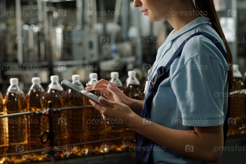Молодой инспектор качества, использующий планшет