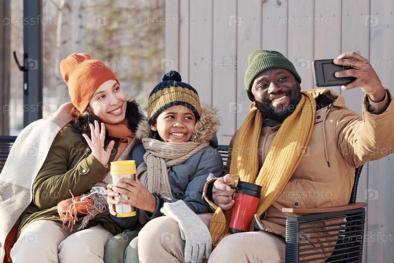 Семья общается в видеочате