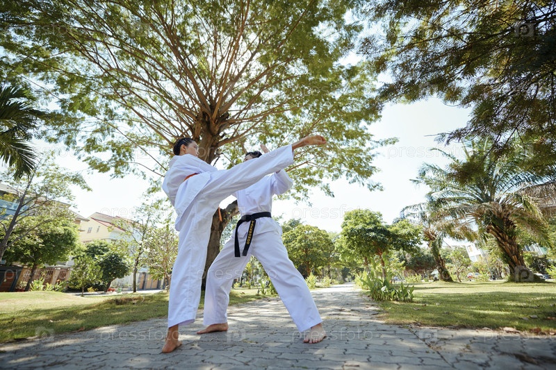 Спортсмены Тхэквондо сражаются в парке