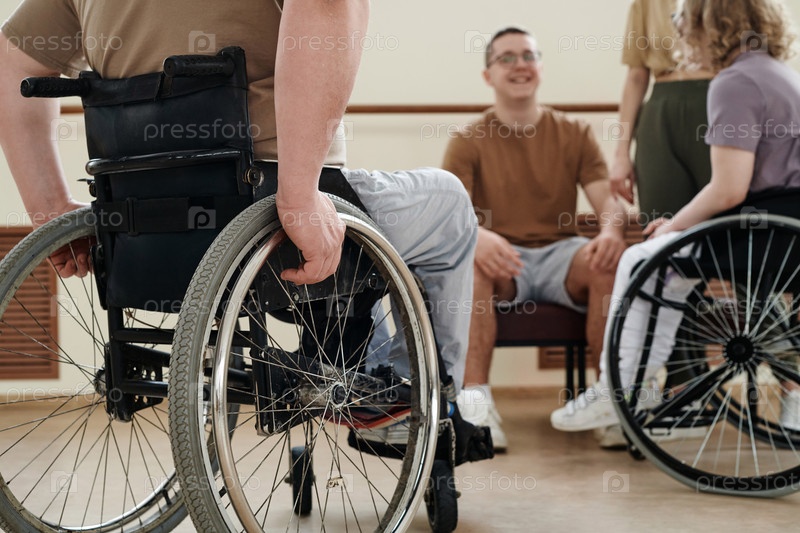 Танцовщики-инвалиды и их тренеры во время перерыва