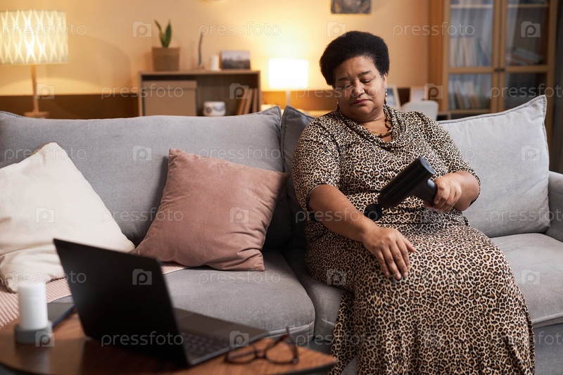 Чёрная женщина, использующая массажер в домашних условиях Senior