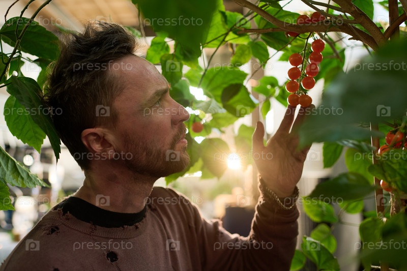 Бородатый человек, выживший после апокалипсиса и выращивающий помидоры