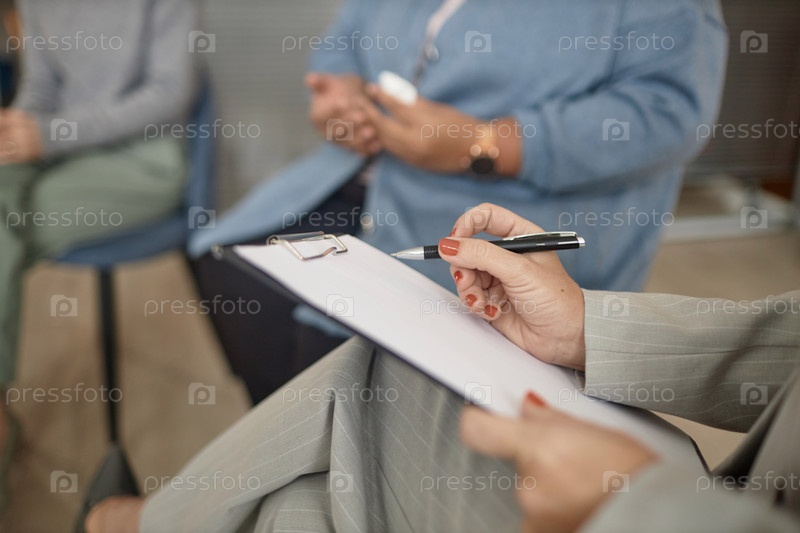 Феминистка-терапевт держит клипборд и ручку