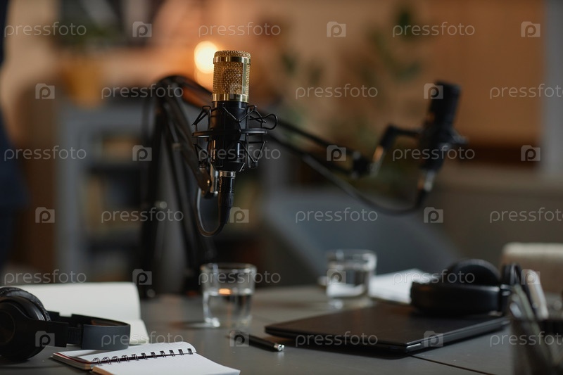 Комната для подкастов с профессиональными микрофонами