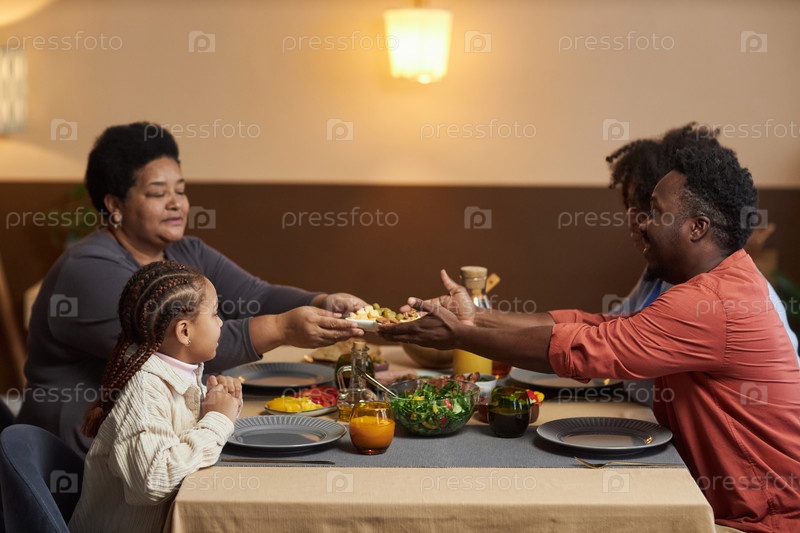 Черная семья трех поколений наслаждается ужином