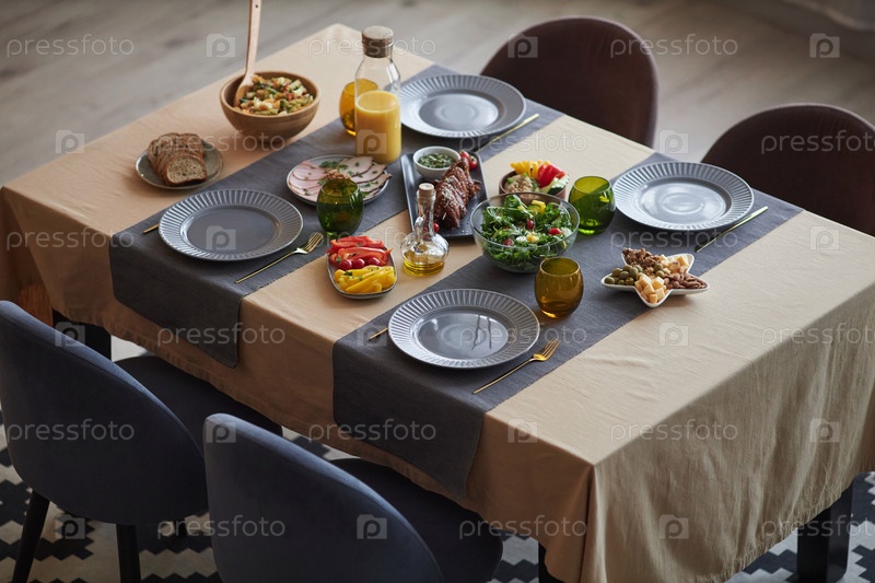 Набор обеденного стола с праздничной едой