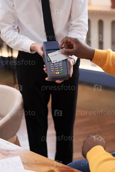 Непризнанный мужчина платит за еду в ресторане