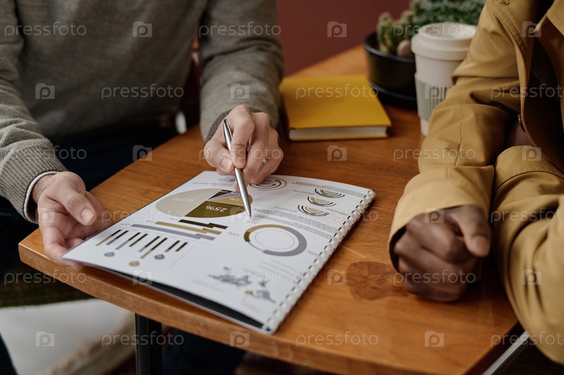 Бирациальные коллеги-мужчины обсуждают диаграммы и графики в документах