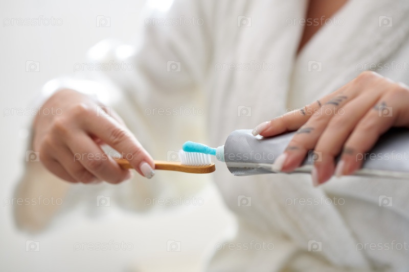 Выжимая зубную пасту на зубной щетке