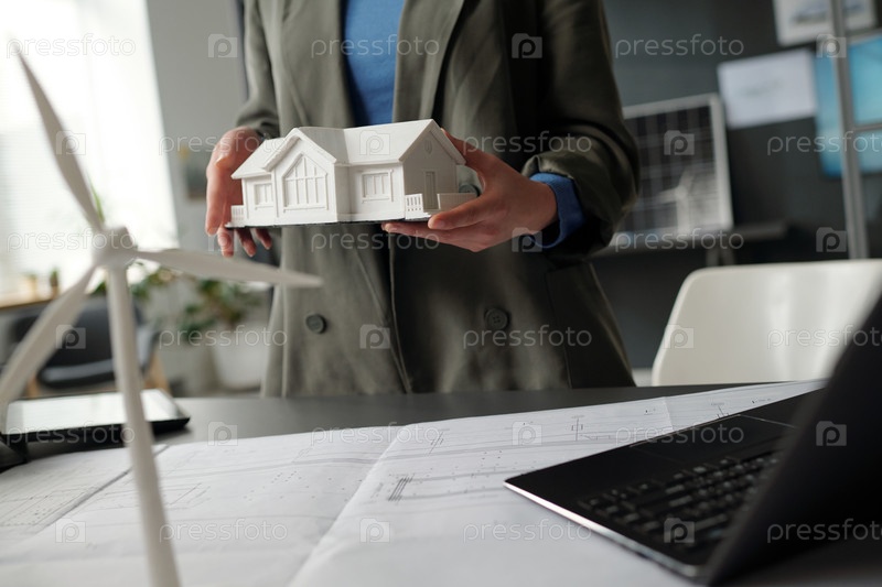 Женщина-архитектор представляет модель дома