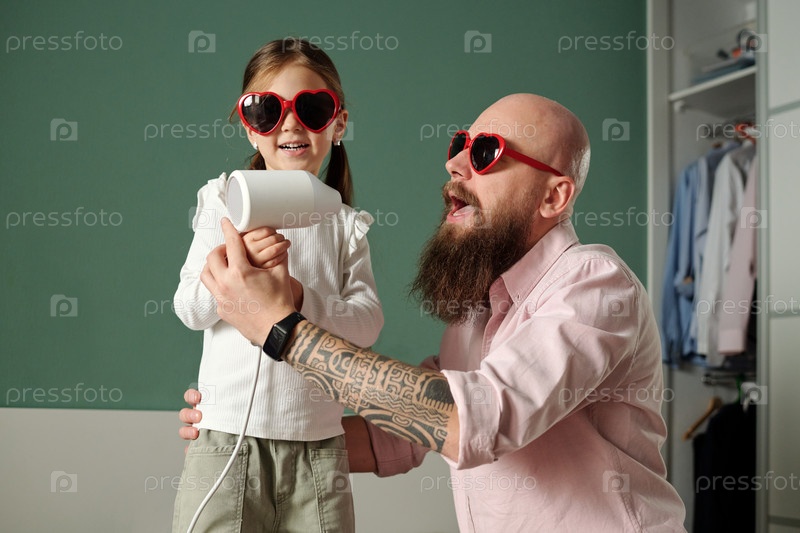 Отец и дочь поют в фейерверке