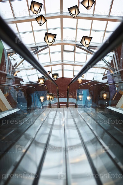 Интерьер торгового центра с эскалатором