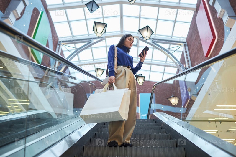 Девушка на эскалаторе в торговом центре