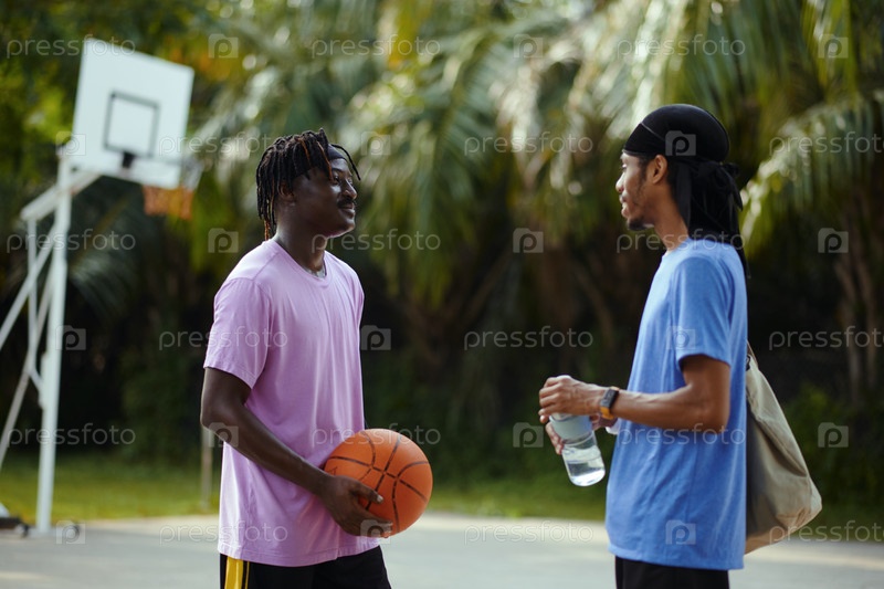 Чернокожие мужчины разговаривают на открытом дворе