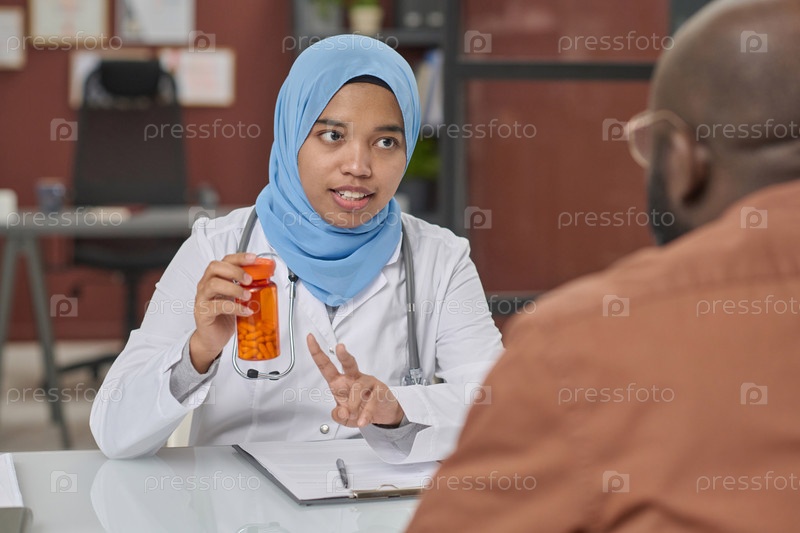Работница больницы назначает таблетки своему пациенту-мужчине