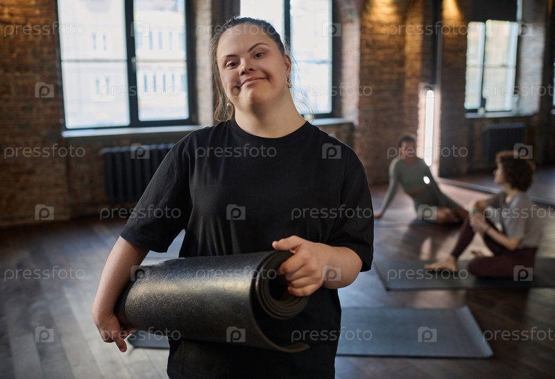 Улыбающаяся спортсменка с синдромом Дауна