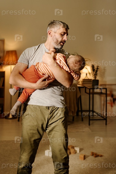 Зрелый отец обнимает своего маленького сына