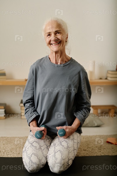 Счастливая пожилая женщина с гантеликами