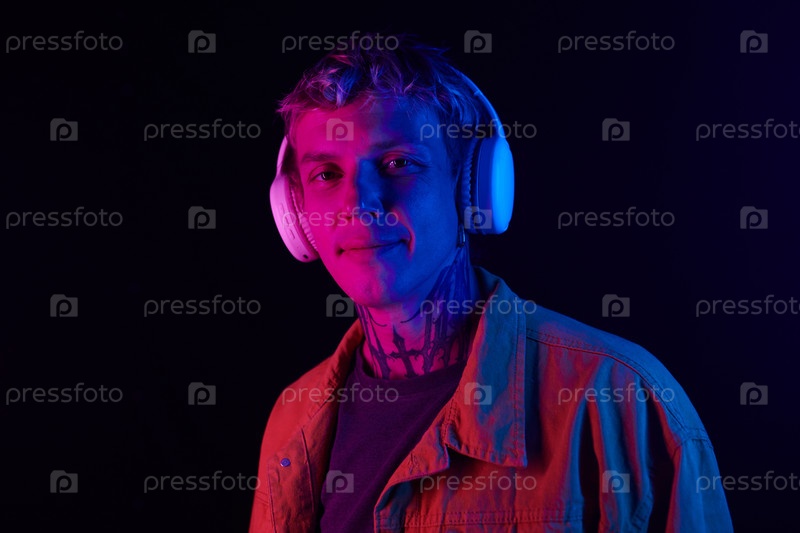 Улыбающийся молодой человек в наушниках