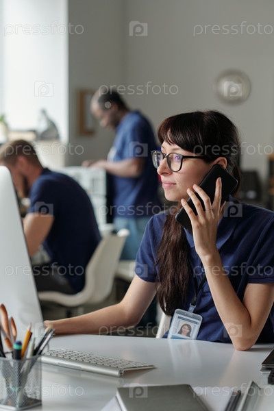 Женщина разговаривает с клиентом по мобильному телефону