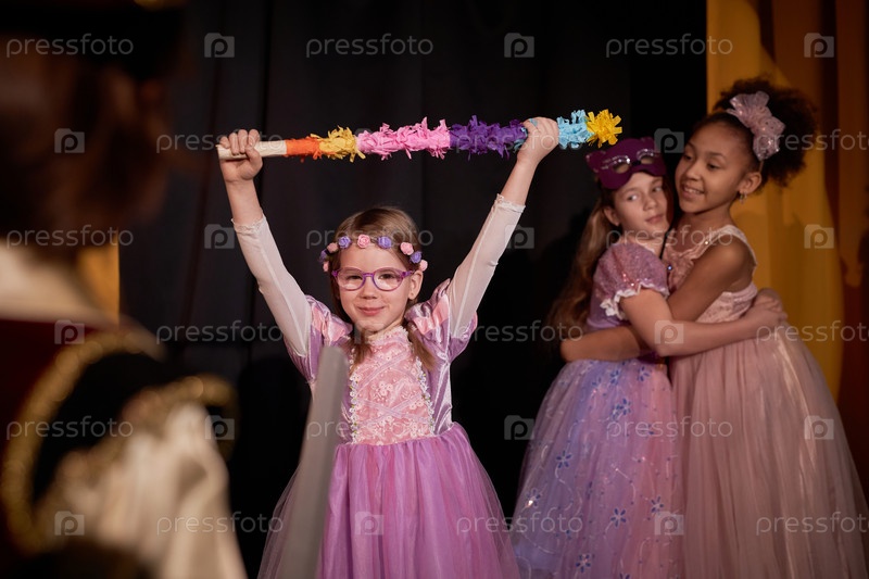 Девушка, играющая на сцене в школьной пьесе