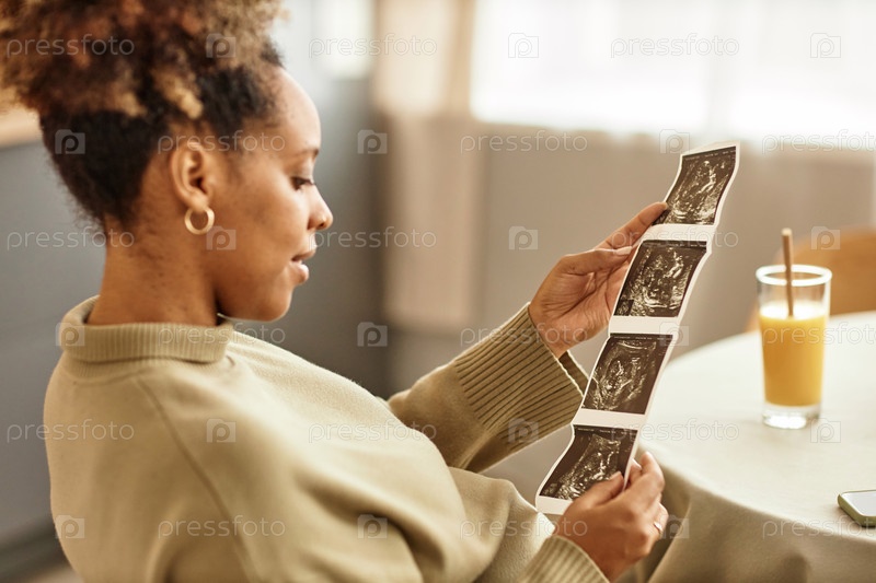 Беременная женщина держит ультразвуковые снимки