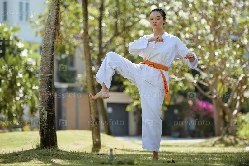 Спортсмен таэквондо тренируется