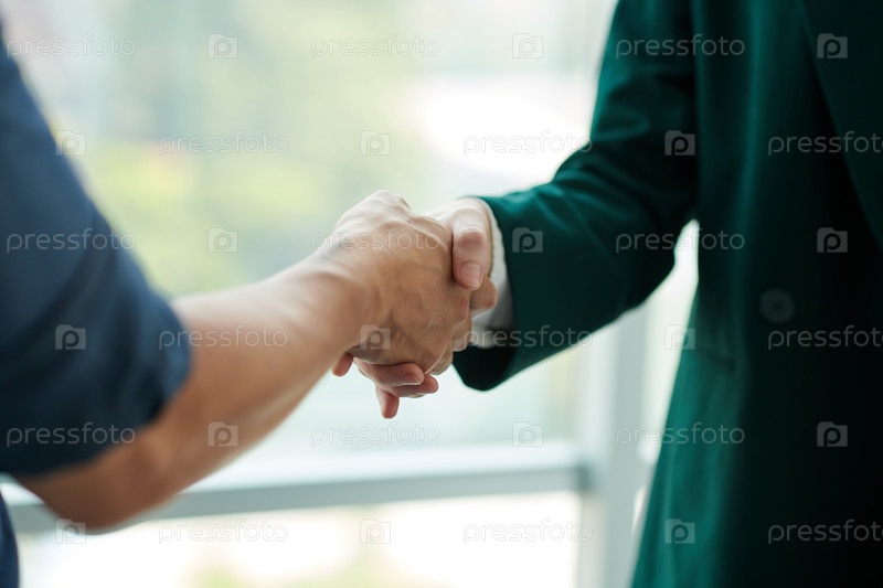 Пожимание рук двух молодых деловых партнеров
