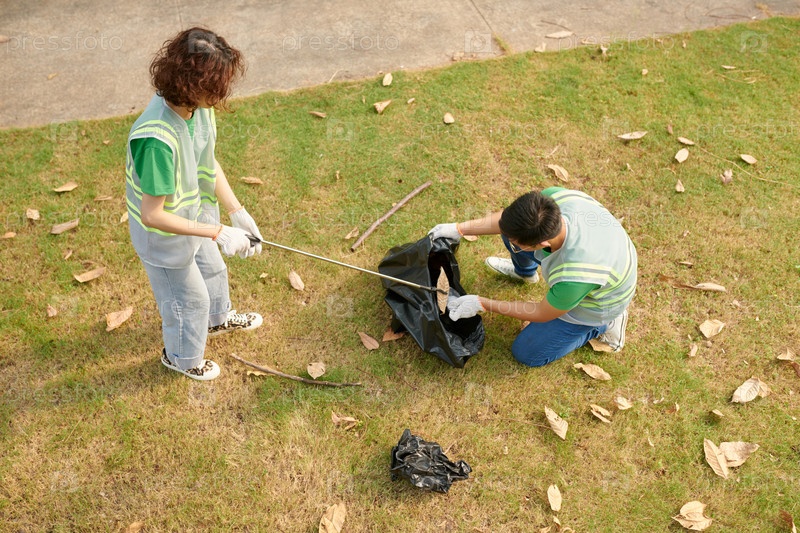 Добровольцы собирают упавшие листья