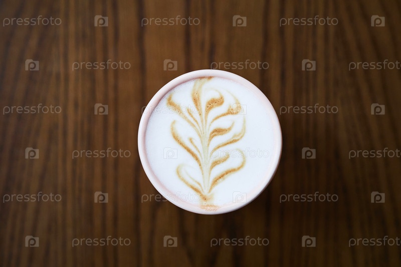 Кофейная чашка с латте-арт вертится в пену